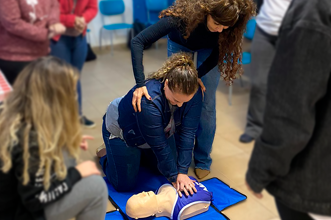 O treinamento oferecido atualmente às escolas é ministrado durante o Horário de Trabalho Pedagógico Coletivo, o HTPC, e segue as orientações preconizadas pela AHA. Grupos de 25 profissionais recebem duas horas de exposição teórica e na sequência ocorre o treino prático das manobras de ressuscitação cardiopulmonar e desengasgo com bonecos. Embora a capacitação seja oferecida nos horários de fim do expediente, a adesão da comunidade escolar é grande.