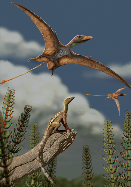 Os pterossauros – o nome significa “lagarto alado – viveram entre 228 milhões e 66 milhões de anos e seus fósseis podem ser encontrados em diversas partes do globo, inclusive no Brasil. Foram os primeiros animais de maior porte capazes de alçar voo, e há décadas os paleontólogos discutem sobre as condições e processos que lhes permitiram desenvolver tal habilidade.